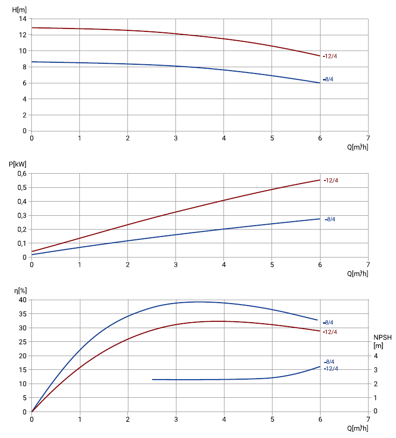 Перекачивание жидкостей с плотностью или кинематической вязкостью большими, чем у воды, приводит к падению давления, снижению гидравлических характеристик и увеличению потребления энергии. В этом случае насос должен быть оснащен двигателем большей мощности