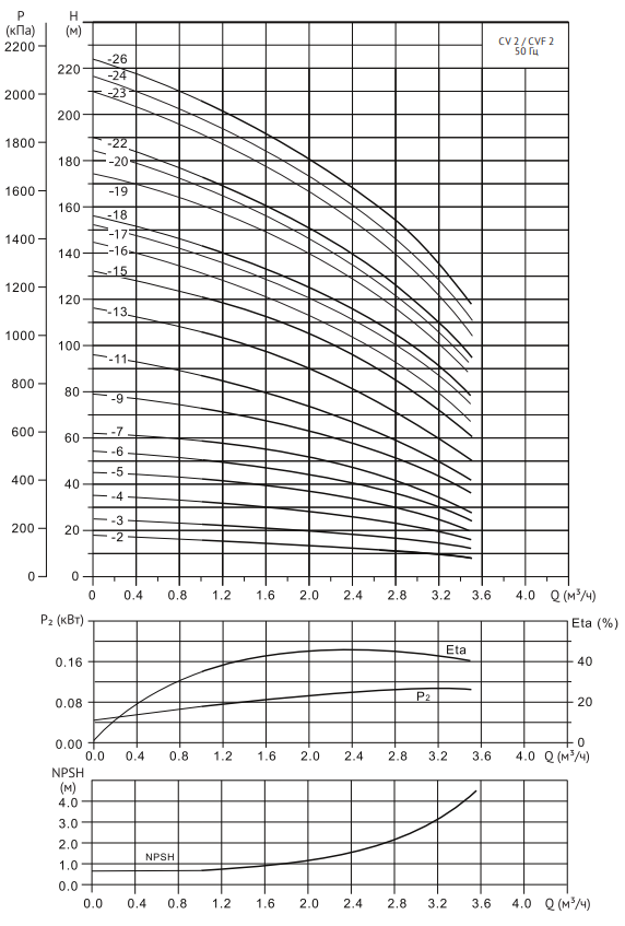 | CVF 2-2 | 0,37 | H (м) | 16 | 15,5 | 14,5 | 14 | 12,5 | 11 | 9,5 | 8 |