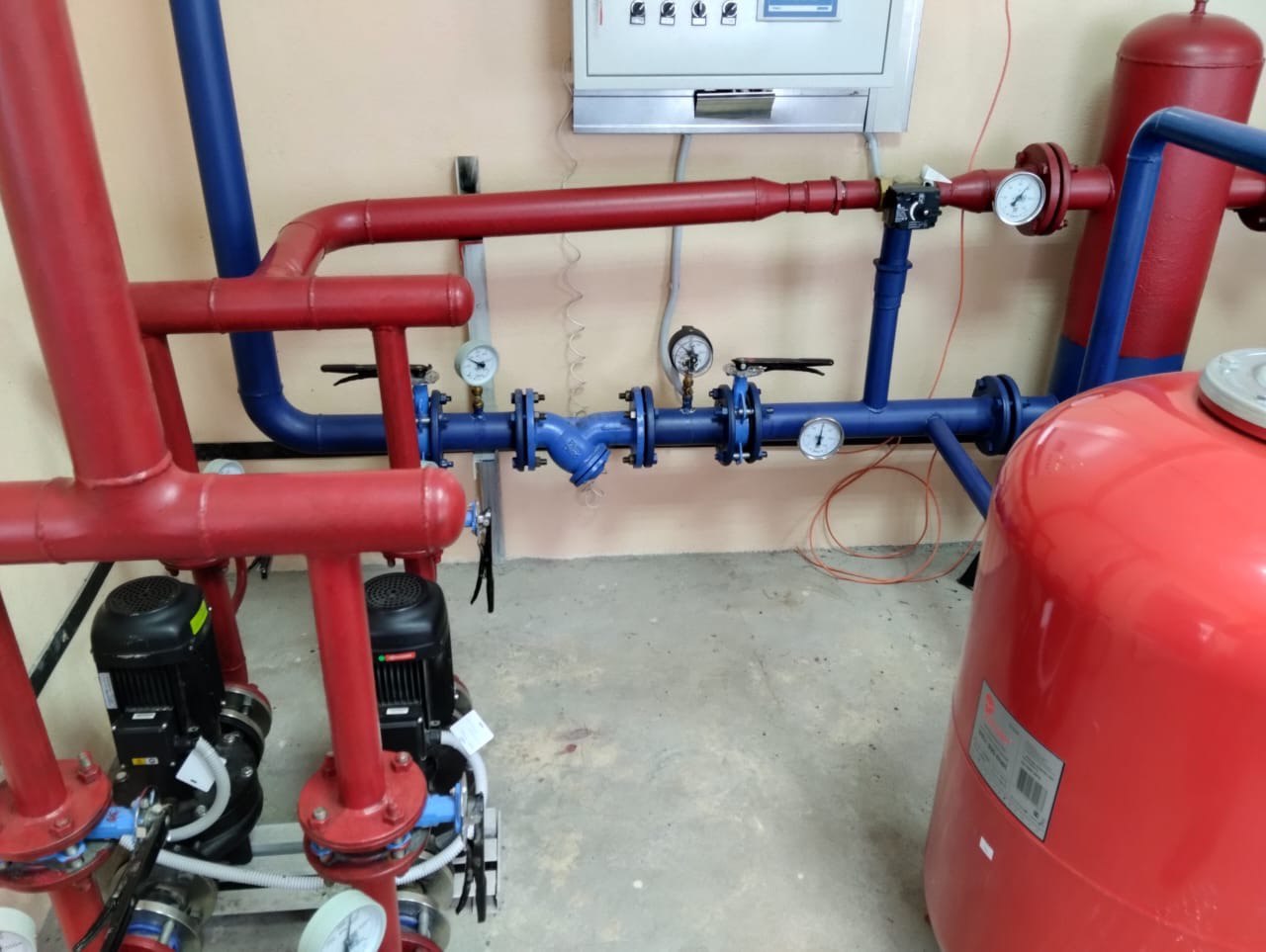 Котельная на производстве ООО "РУСвелл". Установленное оборудование: одноступенчатые центробежные насосы Wellmix TG и циркуляционный насос Wellmix WRS.
