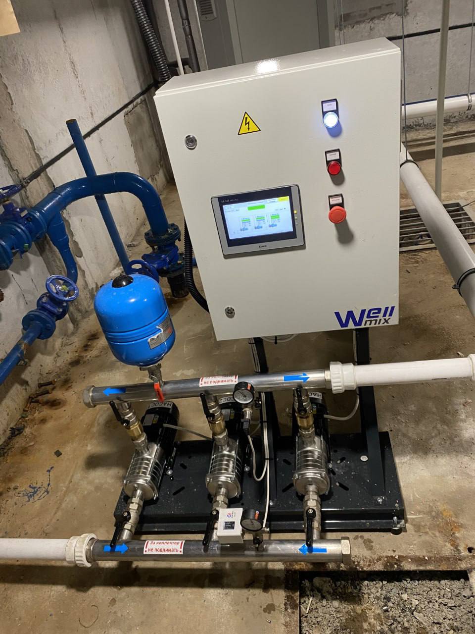 Насосная станция Wellmix для ЖК Космос в городе Курган. В проекте использовано 3 горизонтальных многоступенчатых насоса Wellmix серии CUC. Проект реализован нашим партнером КУБ КУРГАН.